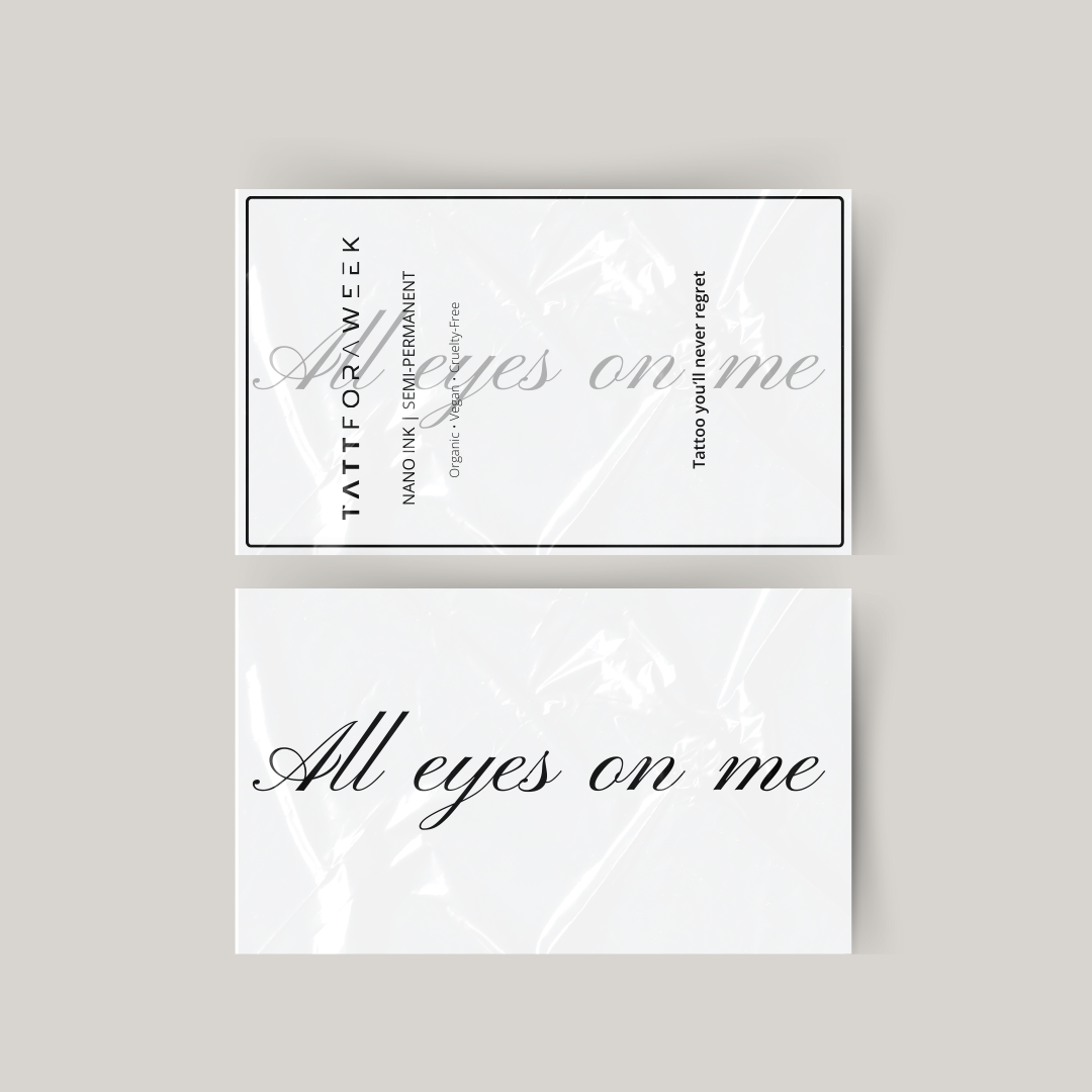 En midlertidig all eyes on me tatovering kan være i op til 2 uger.